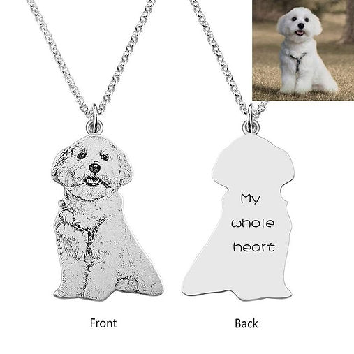 Pet Photo Engraved Necklace, Personalized Pet Memorial Photo Necklace, Dog / Cat