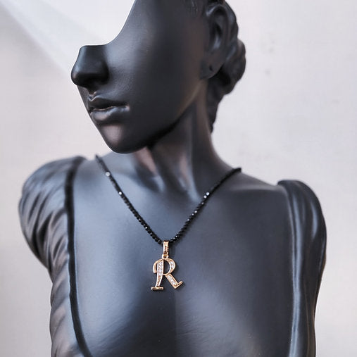 Stone Initials Mangalsutra , Letter Necklace, Crystal beads